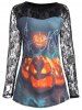 - Plus Size Lace Panel Halloween Pumpkin T shirt
